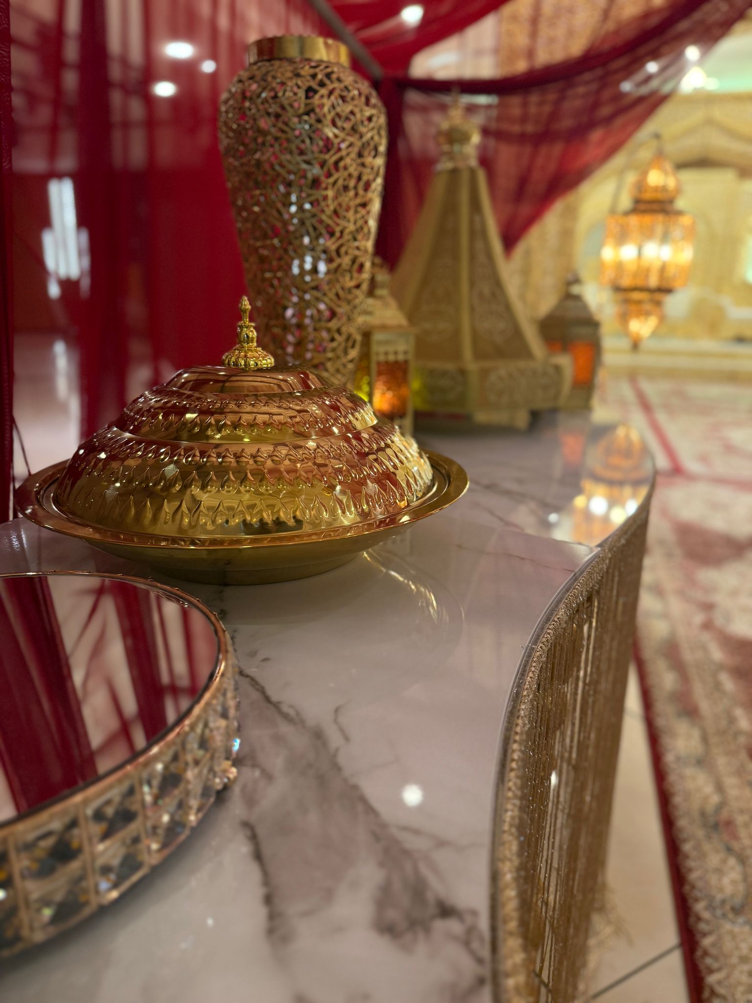 - • קישוטים ותפאורה: שולחנות שוק מעוצבים, ויטרינות לתכשיטים, שטיחים מרוקאיים ועוד.